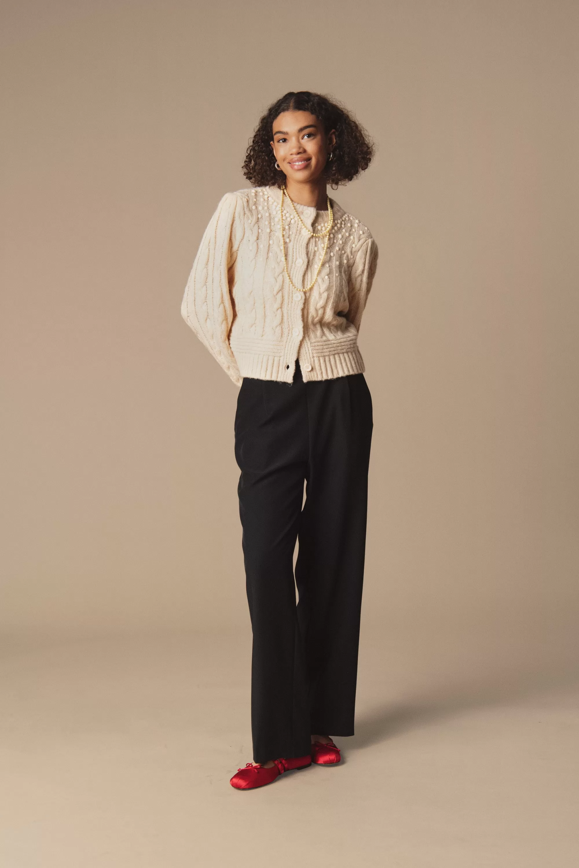 Modellen är 177 cm lång och bär storlek M.